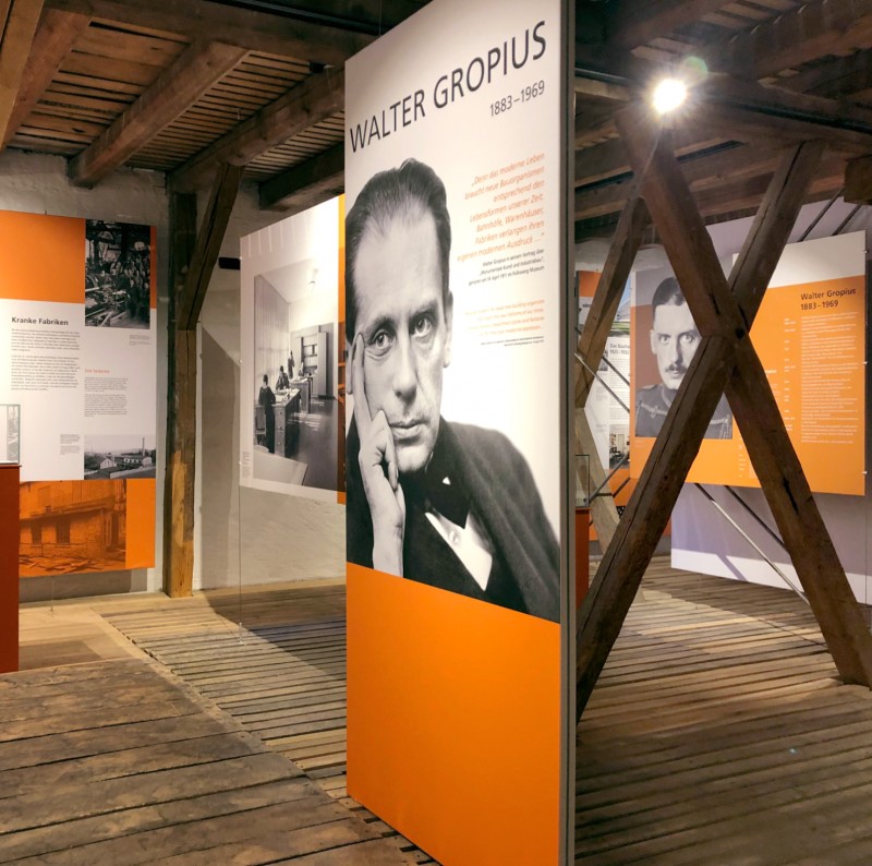 Die Fagus-Gropius-Ausstellung befindet sich in der UNESCO-Welterbestätte Fagus-Werk, in dem bis heute Schuhleisten für die Schuhindustrie bekannter Hersteller gefertigt werden. Die Ausstellung kann im ehemaligen Lagerhaus für Holzrohlinge der Schuhleisten besichtigt werden. Sie umfasst 10 Etagen auf insgesamt rund 3000 qm.