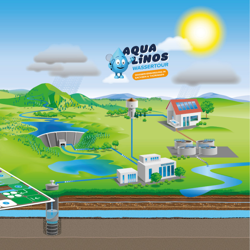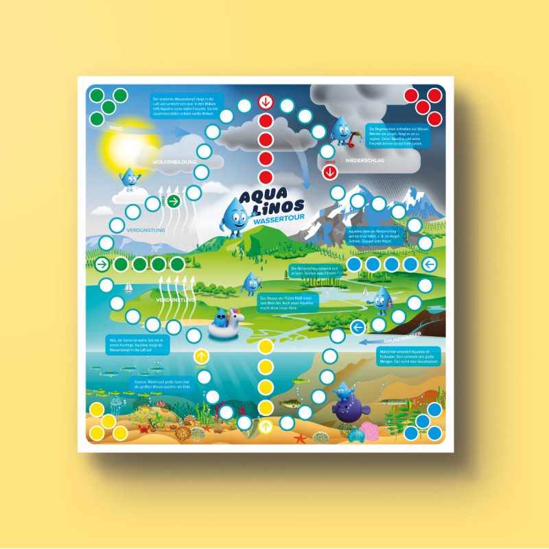 In Zusammenarbeit mit der Gemeinschaftsaktion „Ihre Wasserversorger der Region“ stellt ö_konzept das Spiel „Aqualinos Wassertour“ vor, das von der Konzeption über die Gestaltung bis zur Produktion in unseren Händen lag. In Anlehnung an das klassische „Mensch ärgere dich nicht“ bietet dieses Brettspiel für Familien eine unterhaltsame Möglichkeit, die Welt des Wassers zu erkunden.