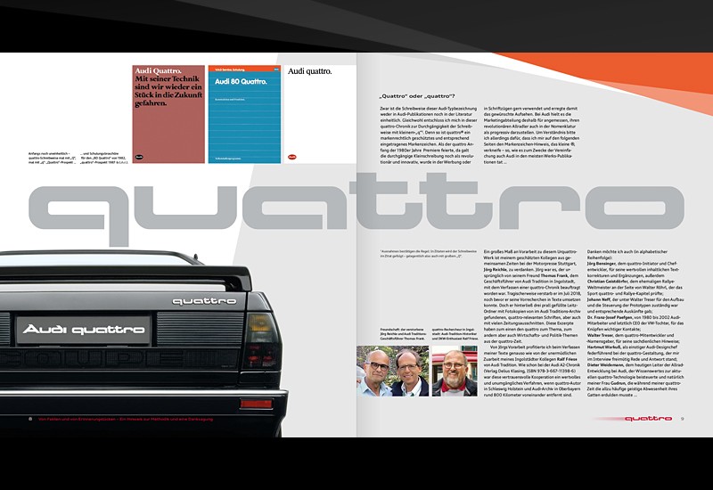 Herausgekommen ist eine einzigartige Monografie, die auf die Erfolgsstory des branchenprägenden quattro-Antriebs blickt und die Besonderheiten des damals markenprägenden Sportcoupés hervorhebt.